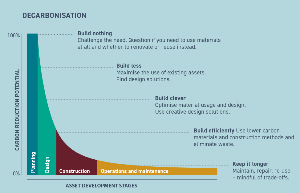 To reduce embodied carbon in new infrastructure and buildings we need to change how we plan, design, procure and deliver. We have to act now to cut carbon over the whole life of an asset.