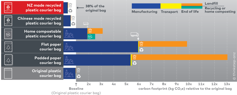 ‘That's not to say that compostables can't be a good solution', says Jeff Vickers, thinkstep-anz’s Technical Director. ‘In many cases they’re good if there's a risk of them ending up in the wider environment, say as litter. But in the case of a courier bag, this isn't usually the case.’