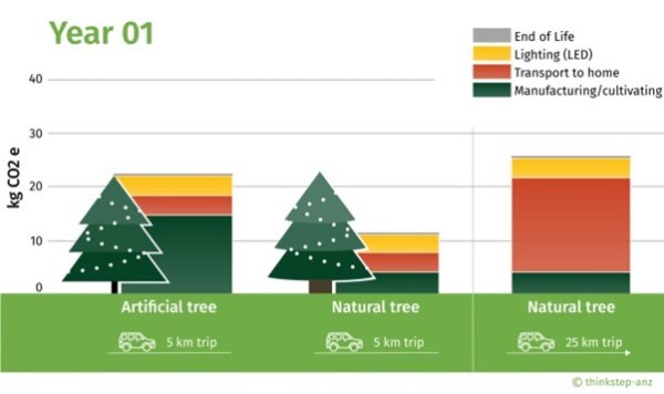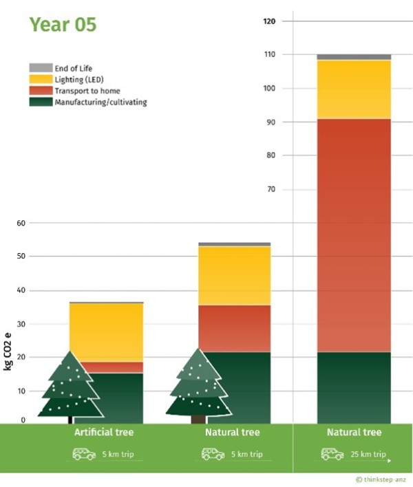 2. A ‘breakeven’ point of around 5 years for when artificial trees become a lower environmental impact option