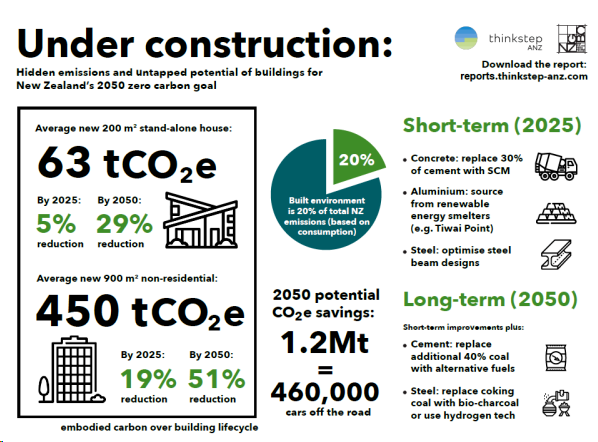 We followed up with a joint report with the New Zealand Green Building Council in 2019. This report – Under construction: hidden emissions and untapped potential of buildings for New Zealand’s 2050 zero carbon goal – identified opportunities to decarbonise New Zealand’s building and construction sector by 40%, with a focus on embodied emissions, between 2019 and 2050.