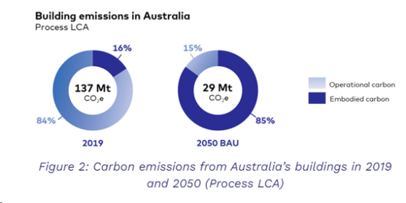 It shows that without action embodied emissions could form 85 percent of the total carbon emissions of Australian buildings by 2050, from a baseline of 16 percent in 2019.