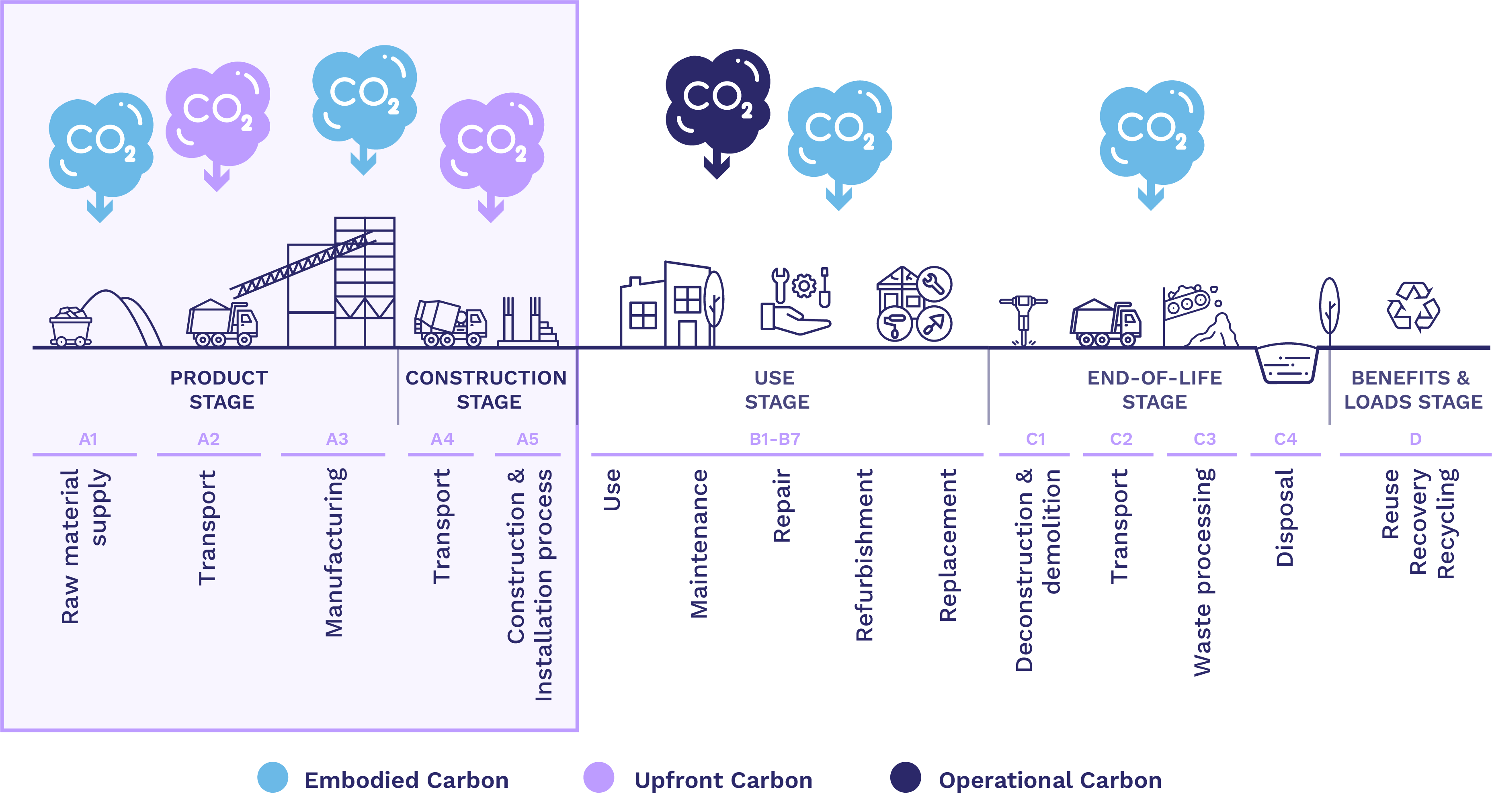 While some operational carbon emissions can be reduced over time, for example through decarbonisation of the energy grid, upfront embodied carbon is ‘locked in’ before the asset is used.