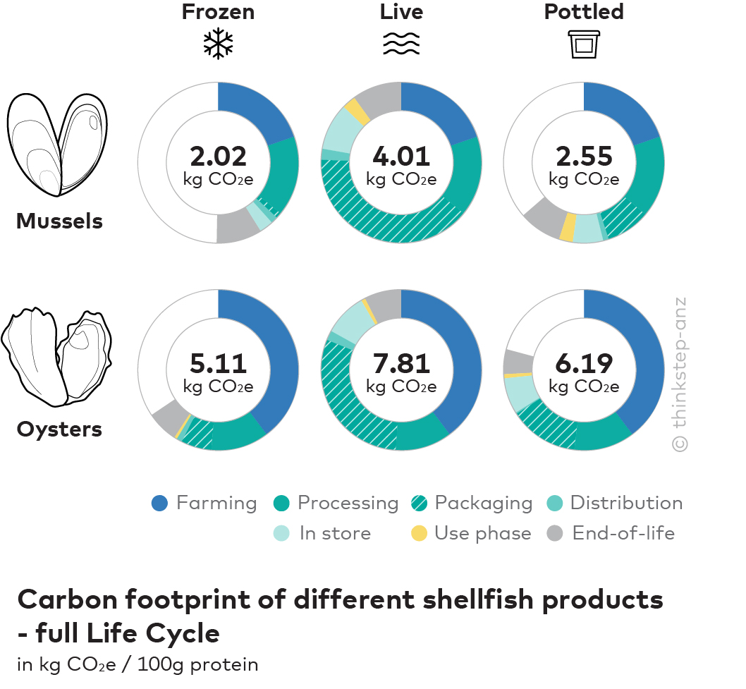 We also highlight the actions that bring down the carbon footprint of New Zealand shellfish even more.