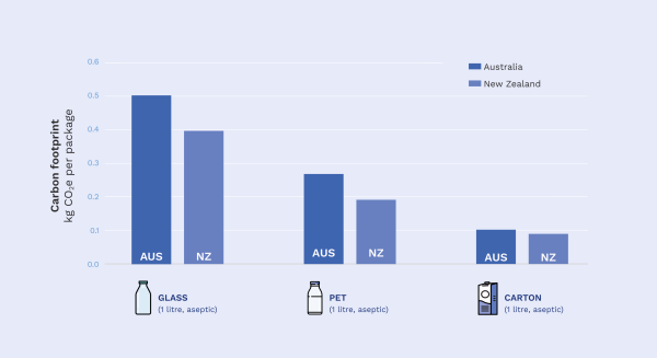 The assessment found that cartons have the lowest carbon footprint of all beverage packaging options in Australia. In New Zealand, cartons have one of the lowest carbon footprint of all packaging options.