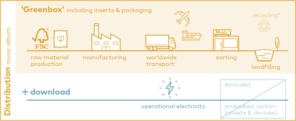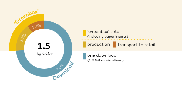 In assessing the Greenbox’s carbon footprint, our team calculated the impact of sourcing raw materials like paper and inks, of making the Greenbox itself, and of transporting it to the many retailers keen to sell Lorde’s latest album. We then allowed for the electricity involved when Lorde’s fans download the album for the first time, and assumed a worst case scenario for its disposal: that fans would send the Greenbox to landfill, rather than recycling it. (In reality, we suspect they will be reluctant to part with it, meaning many CO2e of carbon saved.)